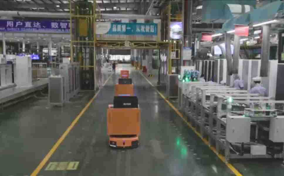 为车载冰箱物流配送打造的智能解决方案,,包含产中物流通过潜伏举升AMR搬运至线边,,,产后成品物流智能仓储,,流程包含产中物流智能齐套入库,,线边安灯叫料AMR智能配送至线边,,,成品入库、、、、出库,,,,通过无人堆高车机器人,,智能仓储管理替代人工作业管理,,,实现更高存储、、、、更高效率、、、、更具柔性化的解决方案。。